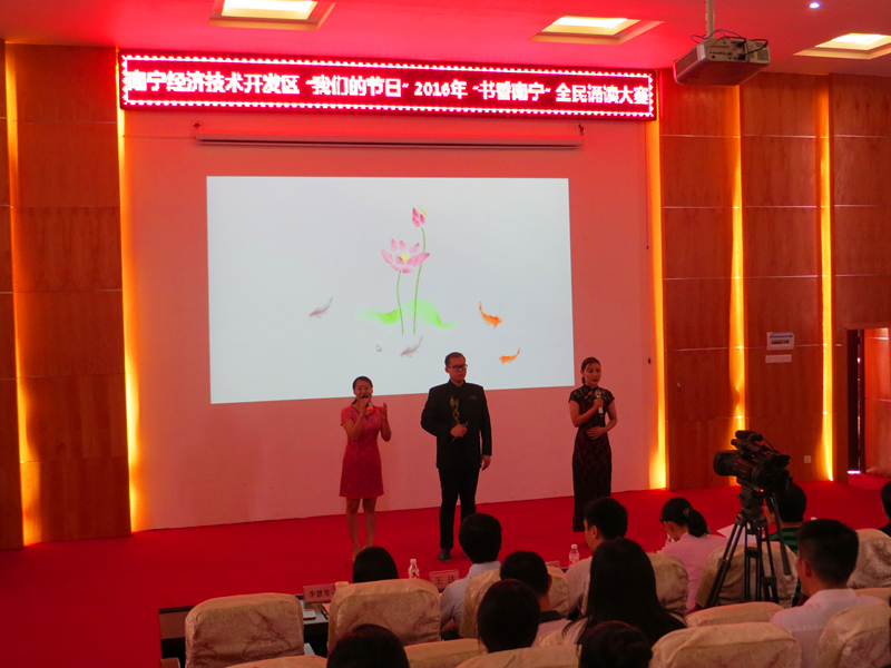 6月15日下午,經(jīng)開(kāi)區(qū)“我們的節(jié)日”——2016年“書(shū)香南寧”全民誦讀大賽在經(jīng)開(kāi)區(qū)一小階梯禮堂舉行。由綠港集團(tuán)總經(jīng)理助理黃麗琴同志率隊(duì)的誦讀小組在比賽中深情地誦讀了《離騷》這一經(jīng)典作品,精彩的表演獲得了三等獎(jiǎng)。