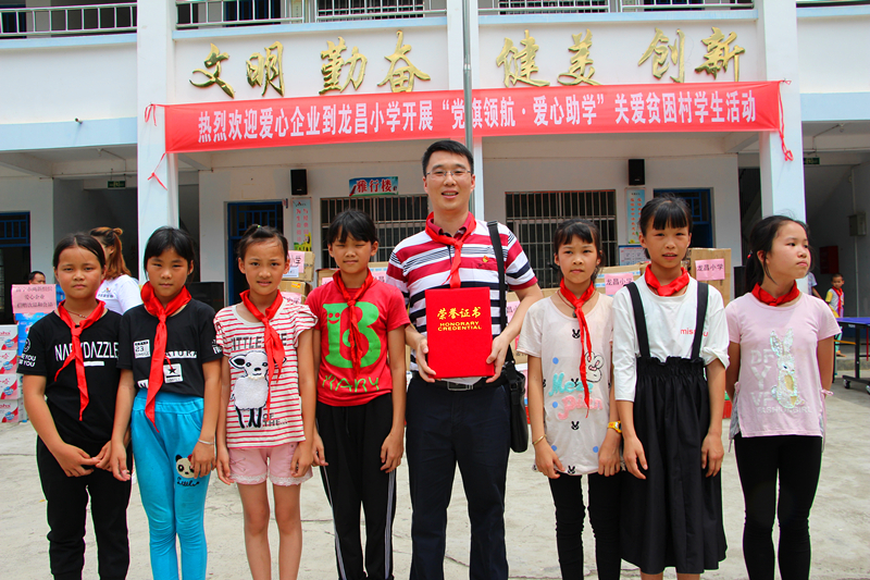 5月31日,“六一”國際兒童節(jié)前夕,由南寧市委組織部、市兩新組織黨工委協(xié)調(diào)經(jīng)開區(qū)、高新區(qū)兩新組織黨工委主辦的“黨旗領(lǐng)航·愛心助學(xué)”關(guān)愛貧困村學(xué)生活動在馬山縣百龍灘鎮(zhèn)龍昌小學(xué)和喬利鄉(xiāng)東良小學(xué)舉行,綠港集團(tuán)黨委積極加入此次愛心助學(xué)行列。當(dāng)天,綠港集團(tuán)黨委連同經(jīng)開區(qū)、高新區(qū)兩新組織黨組織及個人、企業(yè)一起,共同為龍昌小學(xué)、東良小學(xué)640名學(xué)生捐贈了校服1200套、文具700套,以及運動器械、戶外移動音箱以及飲料、食品等愛心物資一批,價值約15.8萬元。