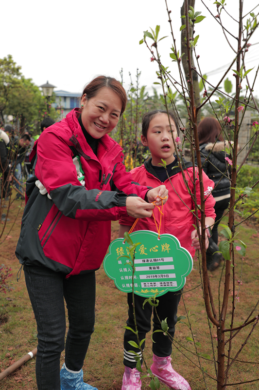 當(dāng)天,綠港集團(tuán)還舉行了植樹護(hù)綠活動(dòng)。在細(xì)雨紛飛中,家長(zhǎng)和孩子們一起動(dòng)手,分工協(xié)作。大家栽得認(rèn)真,干得賣力,揮鍬鏟土、挖坑、栽樹、蓋土、澆水,各個(gè)環(huán)節(jié)銜接有序,配合默契。整個(gè)植樹活動(dòng)現(xiàn)場(chǎng)熱火朝天,歡聲笑語(yǔ)不絕于耳。經(jīng)過一個(gè)多小時(shí)的揮汗奮戰(zhàn),上百棵小樹苗整齊的“站”在了綠港·國(guó)際中心桃樹林中。放眼望去,樹苗迎風(fēng)挺立、搖曳生姿,大家看著這一片自己親手種下的樹苗,無不露出幸福的笑容,紛紛與小樹苗合影。綠港集團(tuán)下屬榮鑫公司副總經(jīng)理唐欽月表示:“植樹造林是一項(xiàng)利于當(dāng)代、造福子孫的偉大工程。綠港集團(tuán)成立五年來,每年都積極組織員工開展義務(wù)植樹造林活動(dòng)。今天我們帶上孩子一起參加義務(wù)植樹活動(dòng),不僅增強(qiáng)了職工們生態(tài)環(huán)境保護(hù)的責(zé)任感,也給孩子們樹立了關(guān)心、愛護(hù)以及主動(dòng)參與家園建設(shè)的意識(shí)和榜樣。”