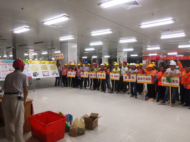 影片播放結(jié)束后,緊接著開展的是安全生產(chǎn)知識競賽活動。參與競賽的人員根據(jù)不同工種、不同部門分成9支隊伍。競賽內(nèi)容包括安全生產(chǎn)法律法規(guī)、應急救援、消防、減災防災、勞動保護等多方面知識,競賽形式為舉手搶答。競賽過程中,9支代表隊你追我趕,毫不示弱,戰(zhàn)況十分激烈。選手們的活躍表現(xiàn)不時引來陣陣掌聲和歡笑聲,即使中途突發(fā)工地停電狀況,也未能澆滅大家的熱情,比賽在高漲的氣氛中繼續(xù)進行。此次競賽以寓教于樂的形式對管理人員和一線施工人員進行安全知識普及,除進一步提高其安全防范意識和應對事故的處理能力,還豐富了大家的業(yè)余文化生活,為有效防止安全事故的發(fā)生提供了有利保障。