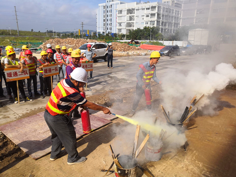 激烈的比賽結(jié)束后,消防應急演練活動開始了。當聽到“起火啦”的大喊聲,全體人員井然有序的進行了逃生演習。伴隨著濃濃的煙霧,每個人捂著“濕毛巾”,沿著樓梯靠右一個接一個的快速撤離。當全體人員走出廠房大門時,工作人員在空地上點燃了幾盆火焰。公司質(zhì)安部負責人講解了干粉滅火器的使用方法后,大家進行了踴躍的嘗試。在此次消防演習中,本著防患于未然的心態(tài),所有人員積極參與,專心聽講,既鞏固了消防安全知識,也提高了項目安全生產(chǎn)工作水平。