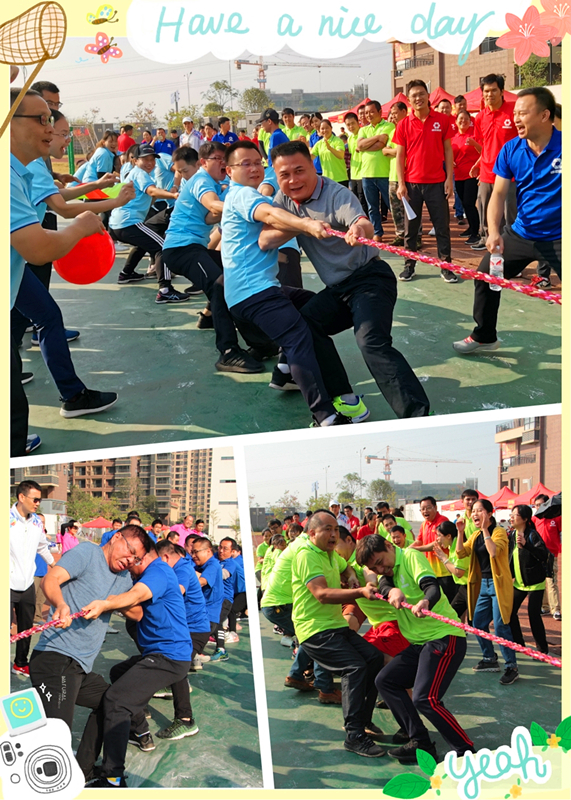首先開始的是拔河比賽,只聽裁判員的一聲哨響,現(xiàn)場馬上進(jìn)入到緊張的比賽環(huán)節(jié)。廖勇副主任與集團(tuán)公司領(lǐng)導(dǎo)一道,一馬當(dāng)先打頭陣,對(duì)壘科巨公司隊(duì)。只見這邊運(yùn)動(dòng)員們個(gè)個(gè)咬緊牙關(guān)、目光如炬,臉憋得通紅、手拉得充血,比賽的戰(zhàn)況緊緊地牽動(dòng)著觀眾們的心,繩子一時(shí)往左一點(diǎn),一時(shí)往右一點(diǎn),在緊張的氛圍中大家聲嘶力竭地給運(yùn)動(dòng)員們加油鼓勵(lì),現(xiàn)場氣氛十分高漲!經(jīng)過幾輪的比拼,萬方公司隊(duì)獲得拔河比賽項(xiàng)目冠軍、科巨公司隊(duì)獲得亞軍、榮鑫公司隊(duì)獲得季軍。