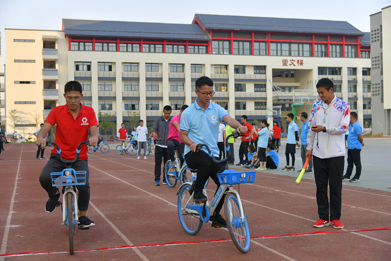 趣味類的活動(dòng)更講究技巧和團(tuán)隊(duì)合作,比如快樂運(yùn)球,五個(gè)人用身體頂著健身球往前跑,帶頭的人既不能跑太快,后方的人也不能拼命擠或拉開距離,這樣球才不容易被擠落。為了贏得比賽,參賽隊(duì)員們可沒少費(fèi)腦力,最終他們憑借集體的智慧和團(tuán)隊(duì)的合作,在運(yùn)動(dòng)場上都發(fā)揮了出色的表現(xiàn)。報(bào)名人數(shù)最多的滾鐵圈項(xiàng)目,則以獨(dú)特而懷舊的道具吸引了65人報(bào)名參加。隨著鐵圈飛轉(zhuǎn),它仿佛讓大家回到了快樂的童年時(shí)光,不少職工撒開腿歡跑起來。即便有些運(yùn)動(dòng)員從來就沒有玩過滾鐵圈,滾得歪歪扭扭,也勇于嘗試,堅(jiān)持完成比賽,贏得了兩旁觀眾們的掌聲。