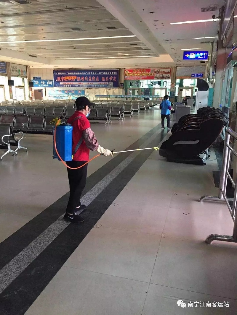 ▲江南客運(yùn)站對(duì)站內(nèi)座椅等相關(guān)設(shè)施進(jìn)行消殺。 (江南客運(yùn)站供圖)