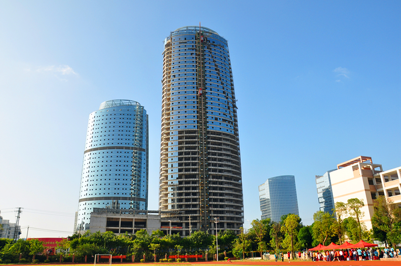 《建設(shè)中的綠港國(guó)際中心》(榮鑫公司 趙志業(yè))圖片說明:綠港國(guó)際中心正在做外墻玻璃裝飾施工,在陽光的照耀下美麗而雄偉。球場(chǎng)上的運(yùn)動(dòng)員意氣風(fēng)發(fā)。預(yù)示著綠港集團(tuán)充滿活力。