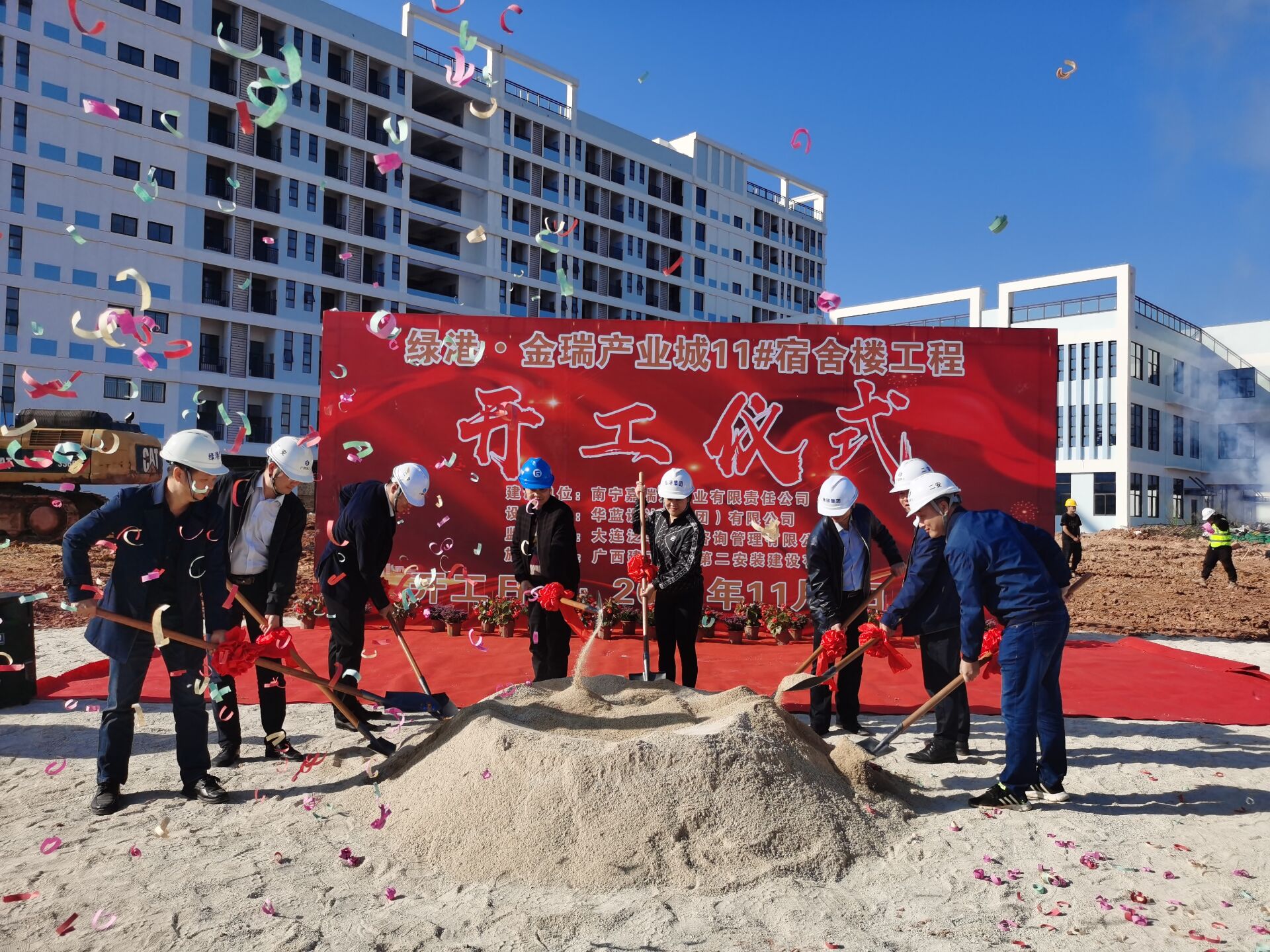 綠港·金瑞產(chǎn)業(yè)城項目位于南寧經(jīng)開區(qū)高嶺路南側(cè)、金陽路西側(cè),占地245畝,總建筑面積406039.74㎡,總投資約13億元。項目包括17個單體建筑,分三期建設,一期約6.1萬㎡;二期約14.8萬㎡;三期約19.7萬㎡。目前,項目一、二期工程正如火如荼建設中,一期工程除16#污水處理廠房外,其他全部單體已拆除外架,計劃于2021年12月完工;二期工程全部單體將于11月完成主體封頂,計劃在2022年1月完工。本次開工建設的11#宿舍樓工程擬建設1棟9層宿舍樓及其他附屬配套設施,建筑面積18129.06㎡,計劃于2022年10月交付。