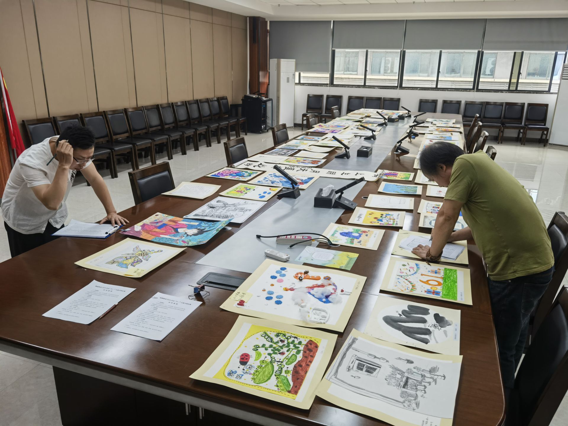 為了確保比賽的公正性和專業(yè)性,綠港集團創(chuàng)新性地采用了現(xiàn)場與遠程相結(jié)合的評審模式,特邀專業(yè)評委老師、學生評委組成評審團。部分無法親臨現(xiàn)場的評委遠程參與了作品評審過程,與現(xiàn)場評委一同對參賽的65幅作品從繪畫主題、構圖完整、色彩和諧、作品感染力和創(chuàng)作力等方面對作品進行細致地考量打分,確保每一幅作品都能得到公平且專業(yè)的評價。經(jīng)過多輪嚴格篩選,最終從兩個年齡段組別(3-6歲、7-12歲)中評選出了共計14個獎項的得主,包括每個組別的一等獎1名、二等獎2名、三等獎4名。
