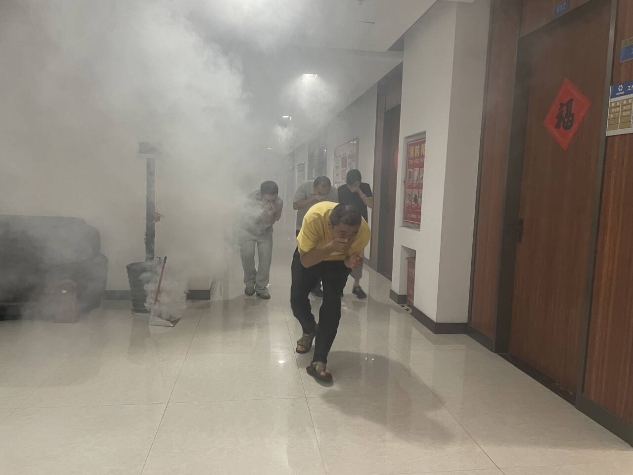 隨后,全體人員轉(zhuǎn)移至模擬火災(zāi)事故現(xiàn)場(chǎng),進(jìn)行現(xiàn)場(chǎng)實(shí)操演練。先后體驗(yàn)了建筑物煙霧逃生、滅火器使用等綜合演練項(xiàng)目。全體員工的安全意識(shí)和應(yīng)急處置能力得到了進(jìn)一步提升。